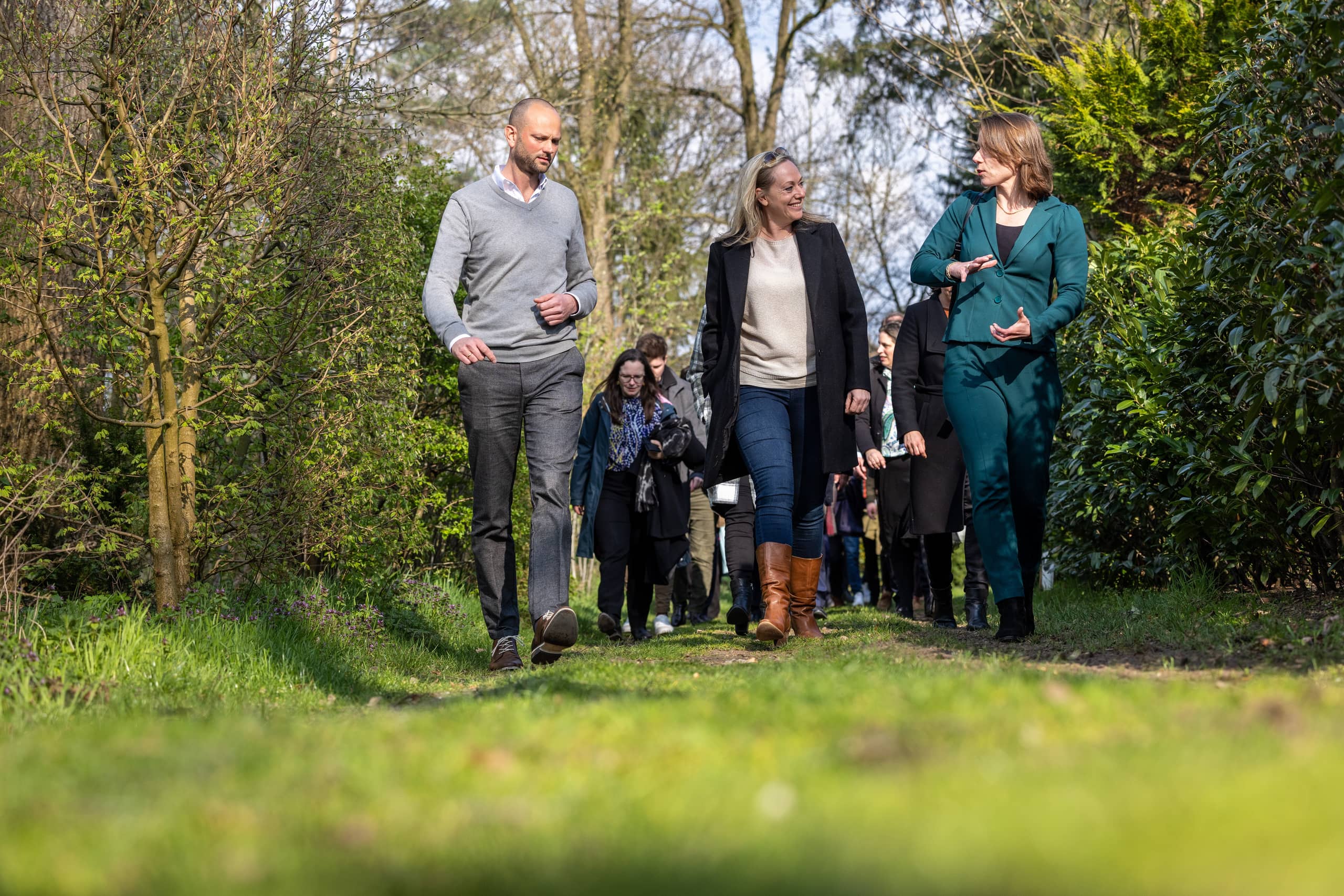 Na dit bezoek voegden bestuurders van de Regio Deal Veluwe zich bij het gezelschap en werd met een bus koers gezet naar Landgoed Schovenhorst in Putten. Samen met gedeputeerde Peter van ’t Hoog (Gelderland), burgemeester Henk Lambooij van Putten, provinciaal ambassadeur Natuurmonumenten Luc Berris en Willem Bijleveld, voorzitter van de alliantie Veluwe op 1 spraken zij onderweg over het belang van regionale samenwerking en samenwerking in de ‘triple helix’ van publieke en private organisaties en kennisinstellingen.
